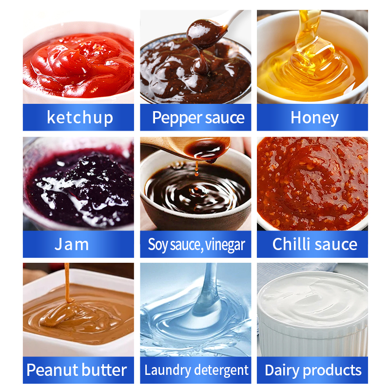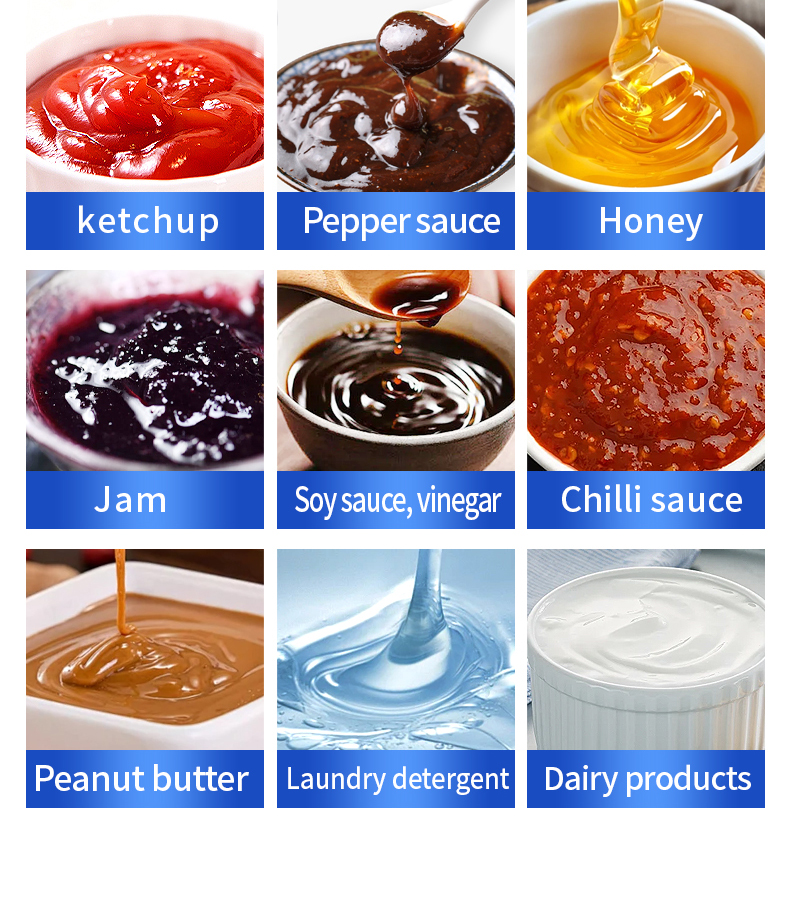 Applications: Tomato sauce, honey, salad dressing, peanut butter, laundry detergent, body wash, soy sauce, vinegar, and other viscous liquids and pastes